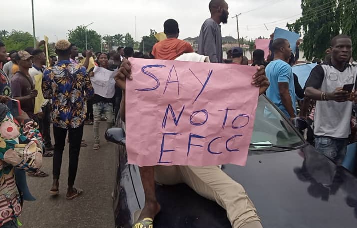 A similar protest against the EFCC took place in February when youth, suspected to be internet fraudsters, blocked the Ilesa-Osogbo express road.